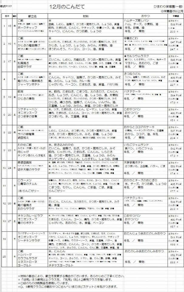 12月の献立を掲載します。